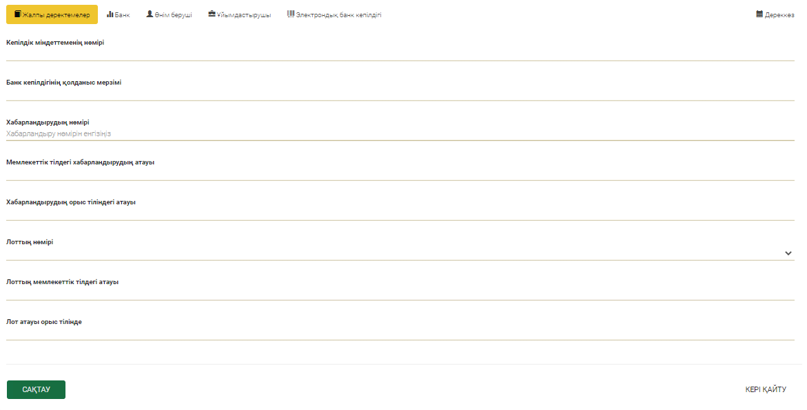 Электрондық банктік кепілдікті толтыру формасы ашылады.
