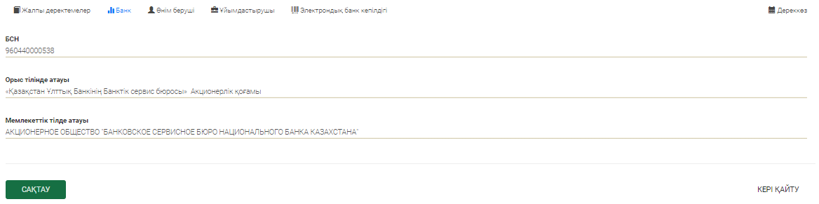 Осыдан кейін «Сақтау» батырмасын басыңыз және «Банк» бетбелгісіне өтіңіз.