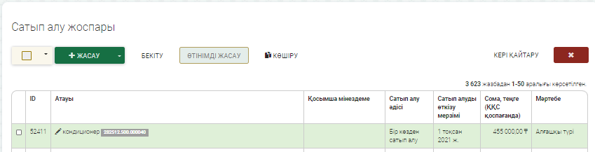Назар аударыңыз! Сатып алулар бойынша порталдан тыс (қағаз тасымалдағышта) жүзеге асырылған карточка өткізілген сатып алулардың қорытындысы бойынша тапсырыс берушілермен жасалады және толтырылады.