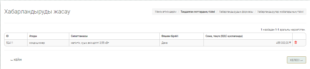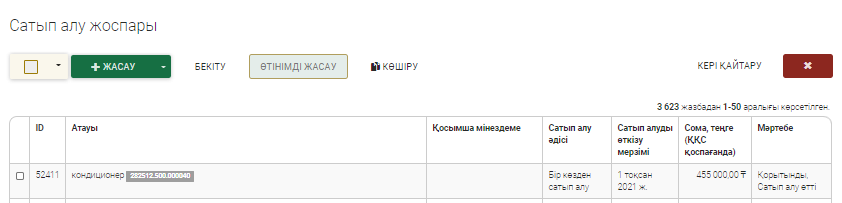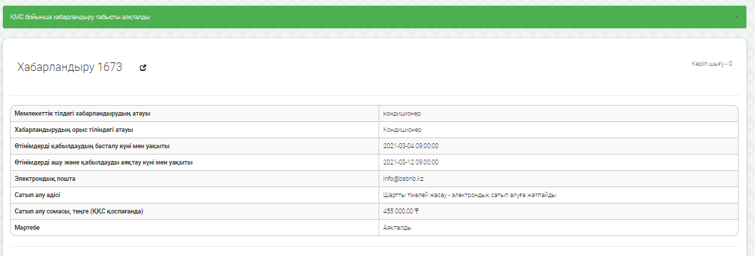 Хабарландыруды жариялағаннан кейін сатып алу «Аяқталды» статусына ауысады.