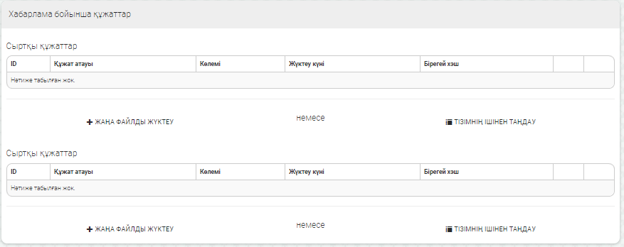 Қажет болған жағдайда құжаттарды – бұйрық, техникалық ерекше нұсқама, шарт жобасы, қорытынды хаттамалар және сатып алулар бойынша құжаттарды жүктейміз.