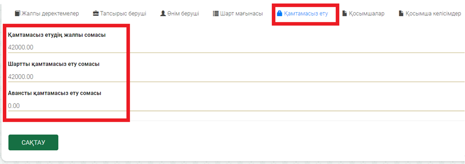 Егер Шарттың авторынан шарттың орындалуын қамтамасыз етуді талап етілген жағдайда, онда Портал шарттың карточкасында шарттың орындалуын қамтамасыз етудің 3% - ын көрсетіледі