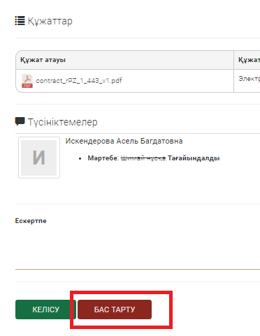 Қажет болған жағдайда Пайдаланушы шартты келісуден немесе қол қоюдан бас тарта алады.