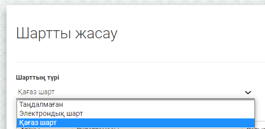 Назар аударыңыз! «Қағаз шартты» таңдаған кезде шарт нысаны көрінбейді.