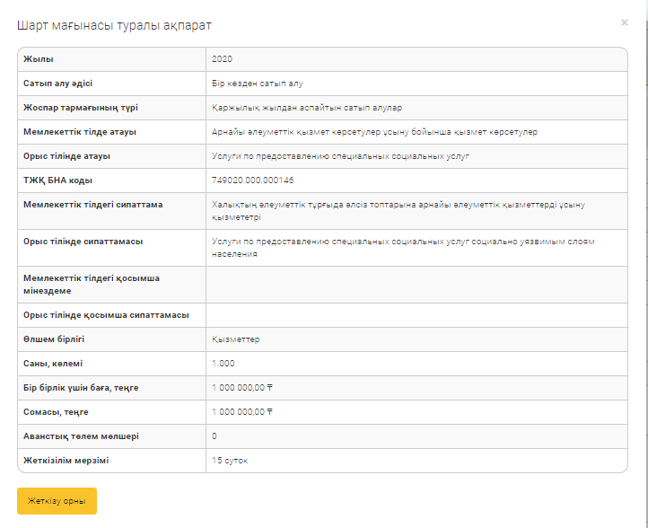 Шарттың мәніндегі «Атауын» басқан кезде, «Шарттың мәні туралы ақпарат» көрсетіледі, барлық деректер жоспар тармағынан автоматты түрде алынады.