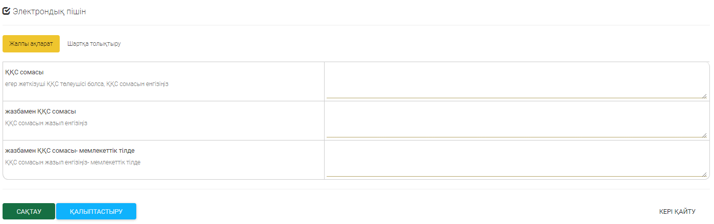 - Егерде Жеткізуші ҚҚС төлеуші болып табылатын болса, «ҚҚС Төлеуші» белгісін қою керек.