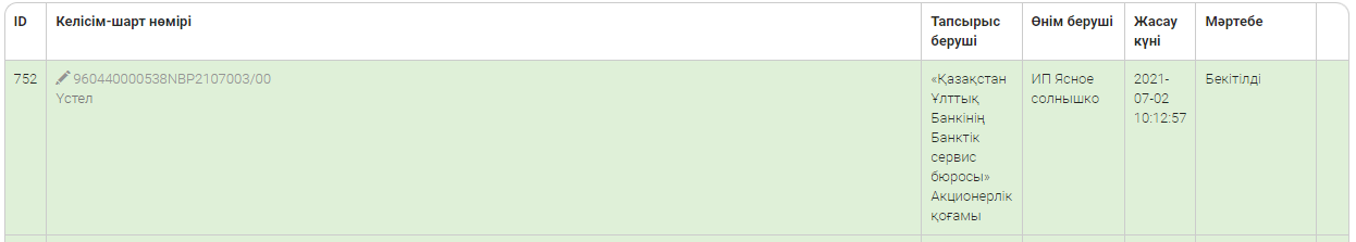 Шарт дұрыс толтырылған жағдайда, «Бекіту» батырмасын басу қажет, шартты редакциялау үшін «Редакциялау» батырмасын басу керек.