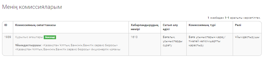 Хабарламада көрсетілген сілтеме бойынша немесе «Комиссия» мәзірі бойынша өту қажет - белсенді комиссияға өтіңіз.