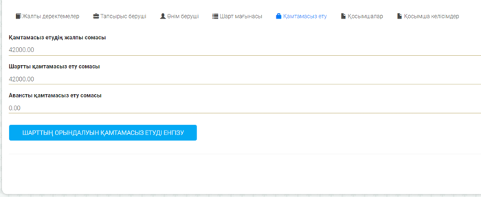 «Шарттың орындалуын қамтамасыз етуді енгізу» батырмасын басқан кезде Портал қажетті сома бойынша нұсқауды көрсетеді