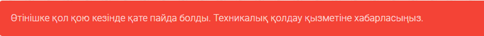 Егер өтінішке қол қою кезінде шарттың орындалуын қамтамасыз етудің бұғатталған сомасы бойынша транзакцияны 1С жүйесіне жіберу қатесі туындаған жағдайда, онда Портал тиісті хабарламаны көрсетеді