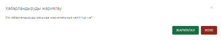 Жүйе «Жарияланымға жауапты» Пайдаланушыны «Хабарламаны жариялауды растау» туралы хабардар етеді.