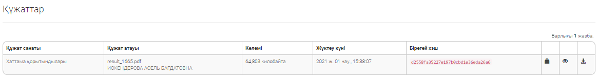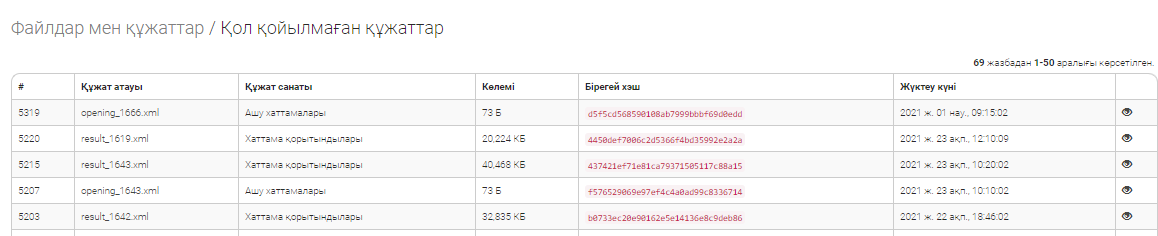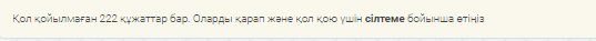 Сілтеме бойынша өткен кезде қол қойылмаған құжаттар тізімі түгелімен шығады. Құжат атауын басып, оған қол қойыңыз