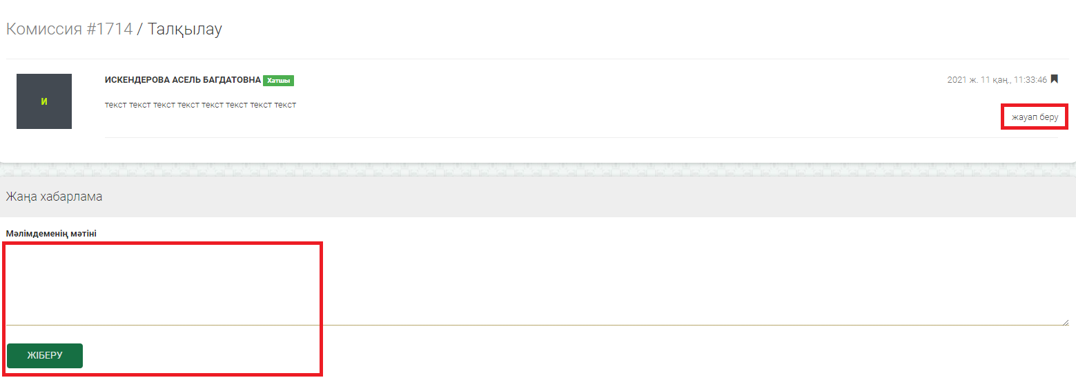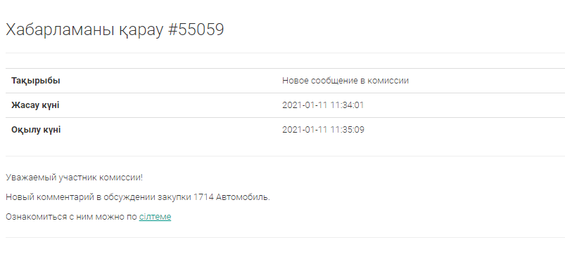 Түсіндіруге жауапты адамға хабарлама келеді онымен танысу үшін сілтеме бойынша өту керек.