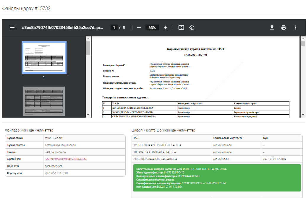 Жүйе автоматты түрде қорытынды хаттаманы құрастырады және оған қол қою қажет екендігін хабарлайды (хабарлама арқылы).