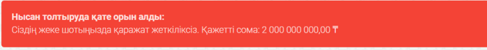 Егер өтінімге қол қою кезінде 1С жүйесіне өтінімді қамтамасыз етудің бұғатталған сомасы бойынша транзакцияны жіберу қатесі туындаса, онда Портал тиісті хабарламаны көрсетеді