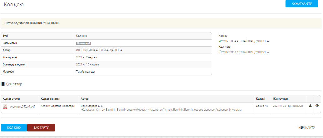 Ашылған терезеде шартпен танысу қажет. Шартқа қол қою үшін «Қол қою» батырмасын басыңыз.