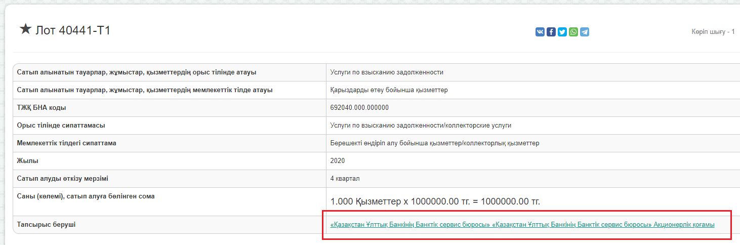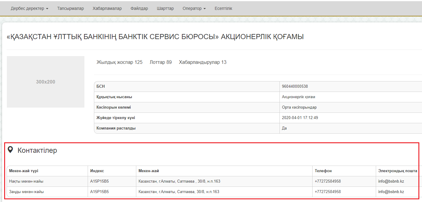 Тапсырыс берушінің байланыс деректерін хабарландыру карточкасында, «Хабарландырулар» мәзірінен қажетті хабарландыруға кіріп және тапсырыс берушінің атауына басу арқылы көруге болады.
