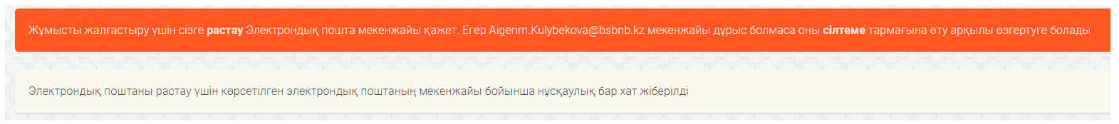 Пошта мекенжайы қате болса, оны сілтеме бойынша өзгертуге болады.