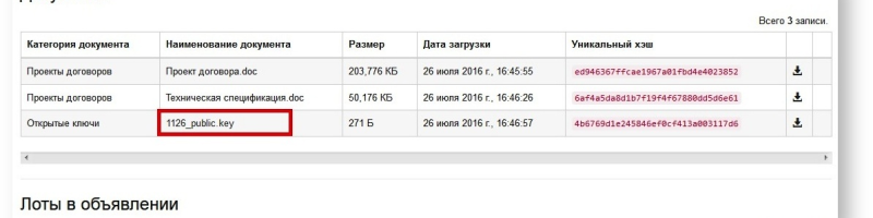«Открытые ключи» в разделе «Документы» – это файл, сгенерированный системой, для шифрования ценовых предложений поставщиков. Поставщику его скачивать не требуется.