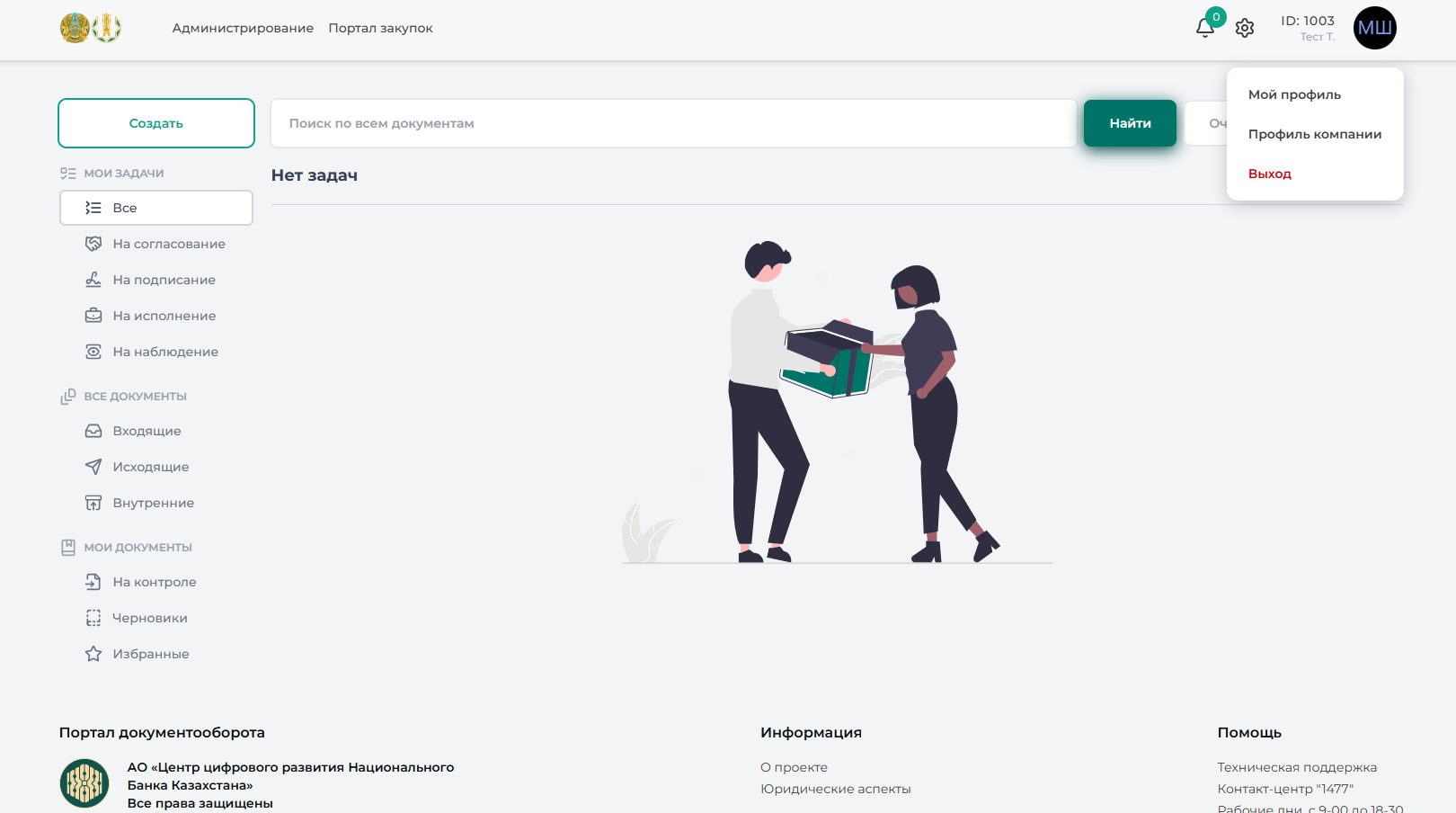 • Мой профиль — переход к настройкам личных данных пользователя (ФИО, почта, пароль и др.).