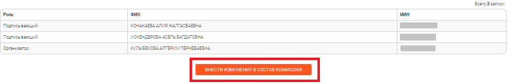 Внимание! Изменение состава комиссии запрещено при наличии сформированного протокола итогов.