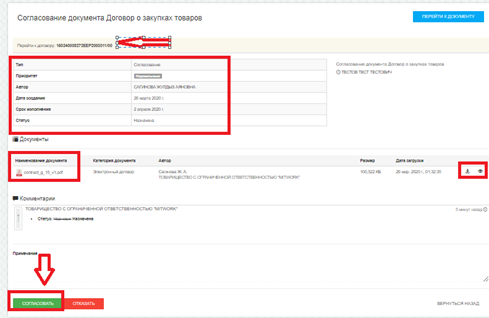 Далее необходимо ознакомиться с содержанием договора, перейти по ссылке в публичную часть договора. Для согласования договора нажмите кнопку «Согласовать».