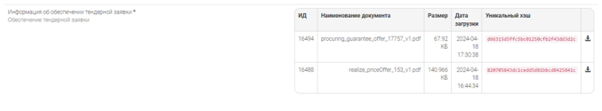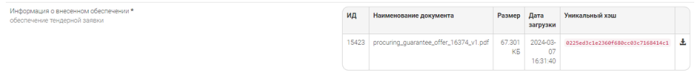 Если у потенциального поставщика имеется электронная банковская гарантия, при публикации заявки на закупку Портал формирует электронный документ «Информация о внесенном обеспечении» и подтягивает электронную банковскую гарантию