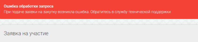 Если при подаче заявки на закупку возникла ошибка направления транзакции по заблокированной сумме обеспечения тендерной заявки в систему 1С, то Портал отображает соответствующее уведомление