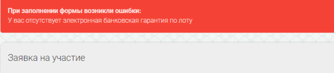Если у потенциального поставщика отсутствует электронная банковская гарантия, при публикации заявки на закупку Портал отображает соответствующее уведомление.