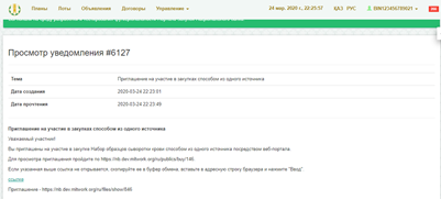 Чтобы подать заявку, необходимо перейти по указанной ссылке в уведомлении, далее последующие действия аналогичны действиям описанным в Разделе "Участие в закупках способом "Запроса ценовых предложений".