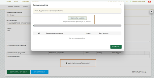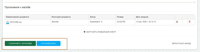 После того как форма будет заполнена, поставщик может сохранить либо опубликовать свою жалобу.