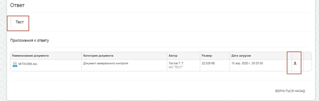 Ознакомьтесь с ответом и приложенным к нему документом от камерального контроля.