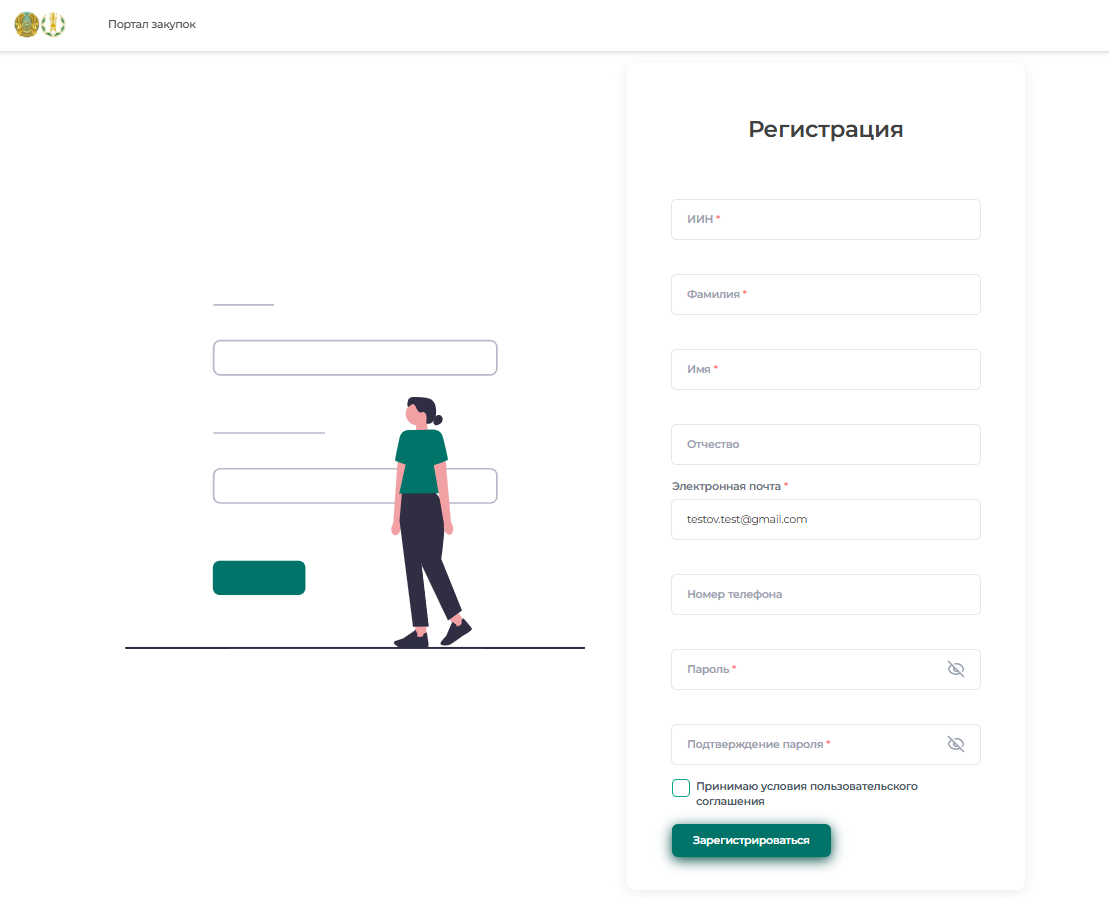 Также сотрудник должен принять условия пользовательского соглашения и нажать кнопку «Зарегистрироваться» (Рисунок 1).