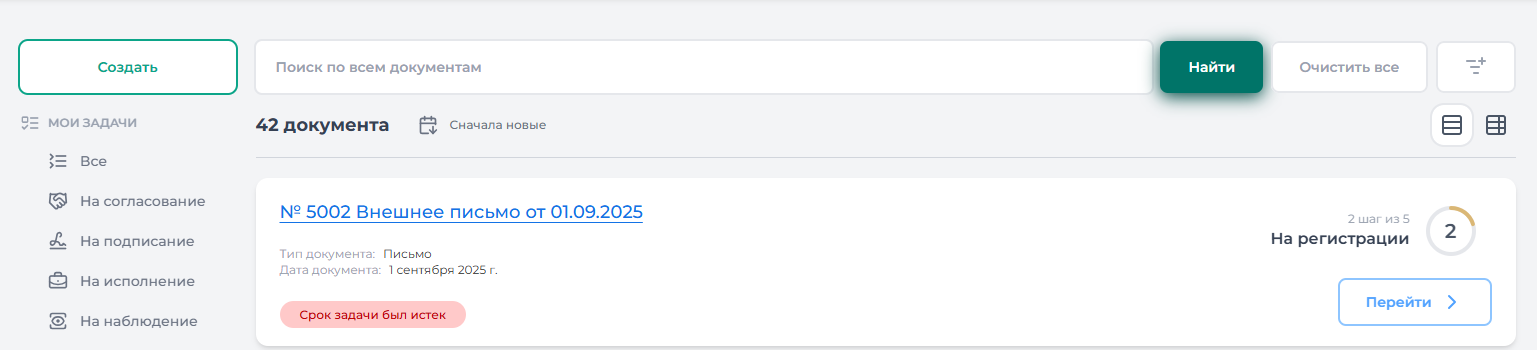 Документы, требующие регистрации, доступны в разделе «Все документы» → «Исходящие» (Рисунок 79).