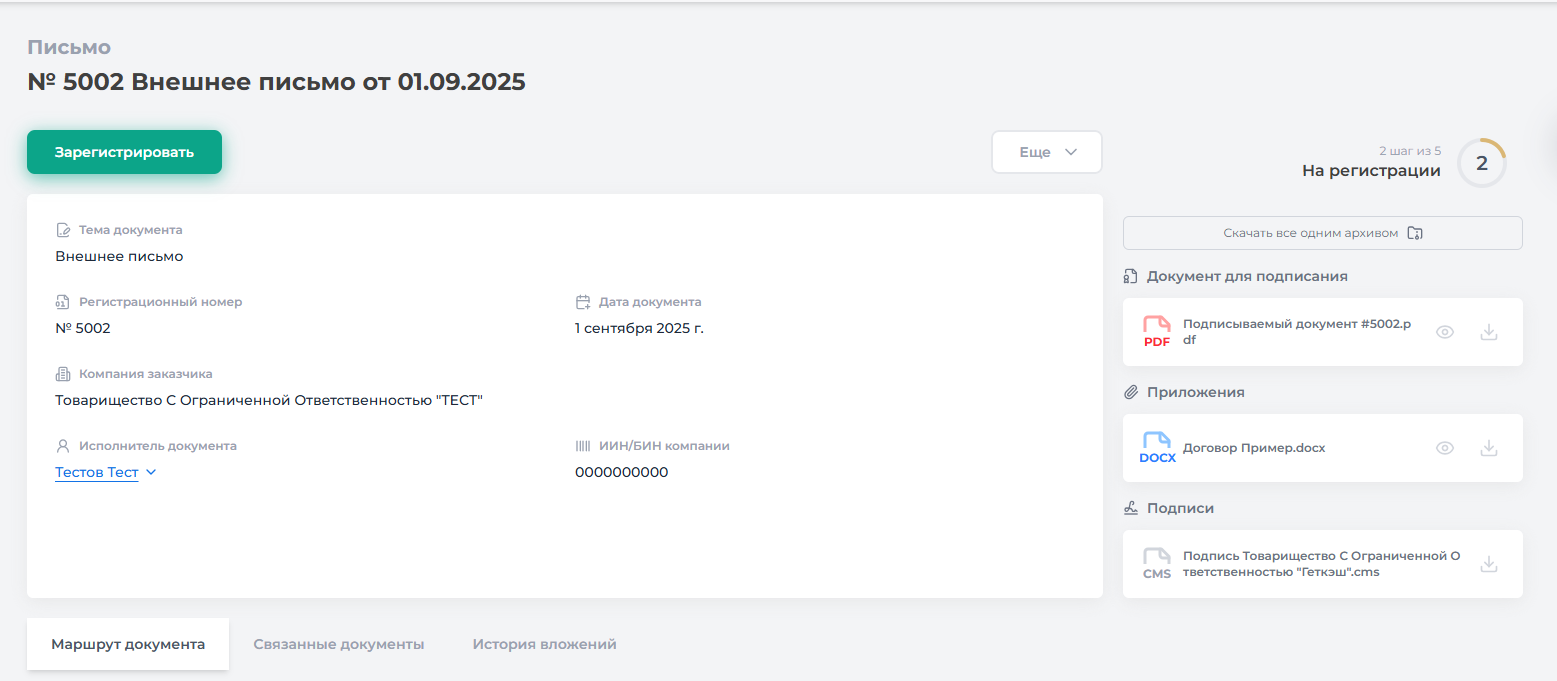Регистрация внешнего письма