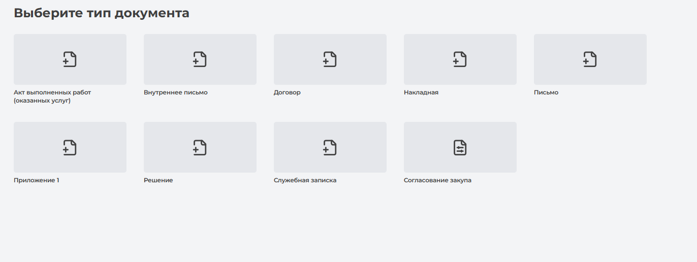 После этого система открывает страницу выбора типа документа, где вы выбираете «Служебная записка» (Рисунок 156)