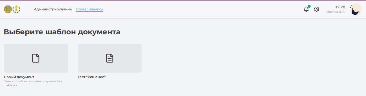Далее, система открывает страницу выбора шаблона документа, где необходимо выбрать (Рисунок 157)