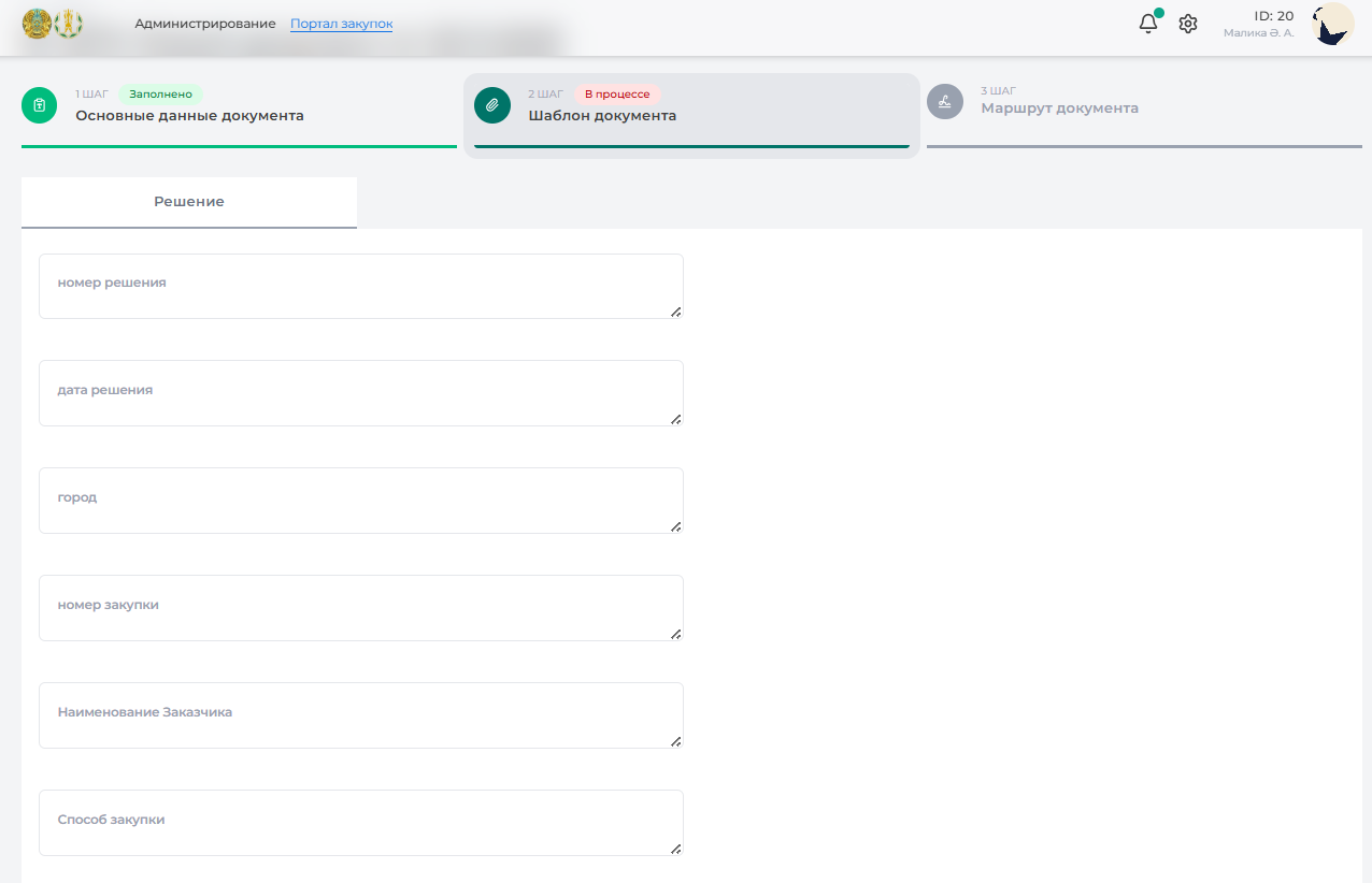 При создании “Решение” открывается страница и отображается поля для заполнения (Рисунок 158).