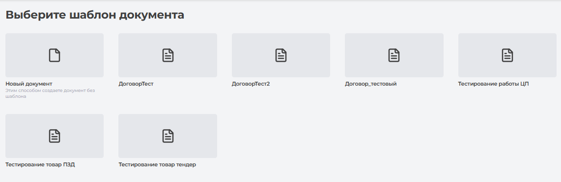 Далее, система открывает страницу выбора шаблона документа, где необходимо выбрать необходимый шаблон (Рисунок 177).