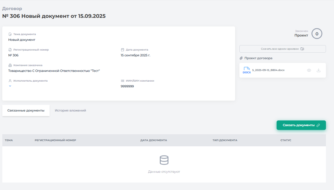 Дополнительно в карточке доступна функция «Скачать все одним архивом», которая позволяет скачать документ вместе с приложениями в одном архиве.