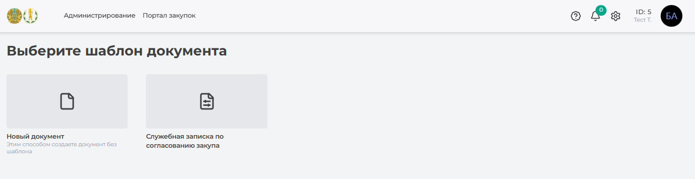 Далее, система открывает страницу выбора шаблона документа, где необходимо выбрать вариант «Новый документ» (Рисунок 87).