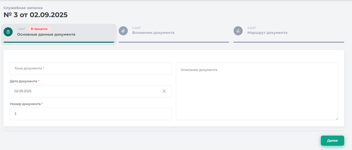 ● Номер документа – формируется автоматически и соответствует внутреннему идентификатору (ID) документа в системе.