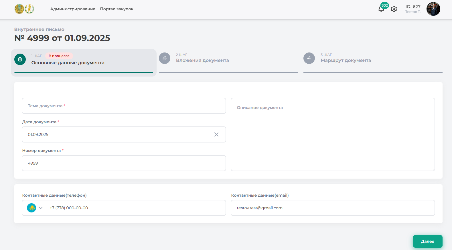 ● Контактные данные (телефон и email) – система автоматически подставляет данные автора документа.