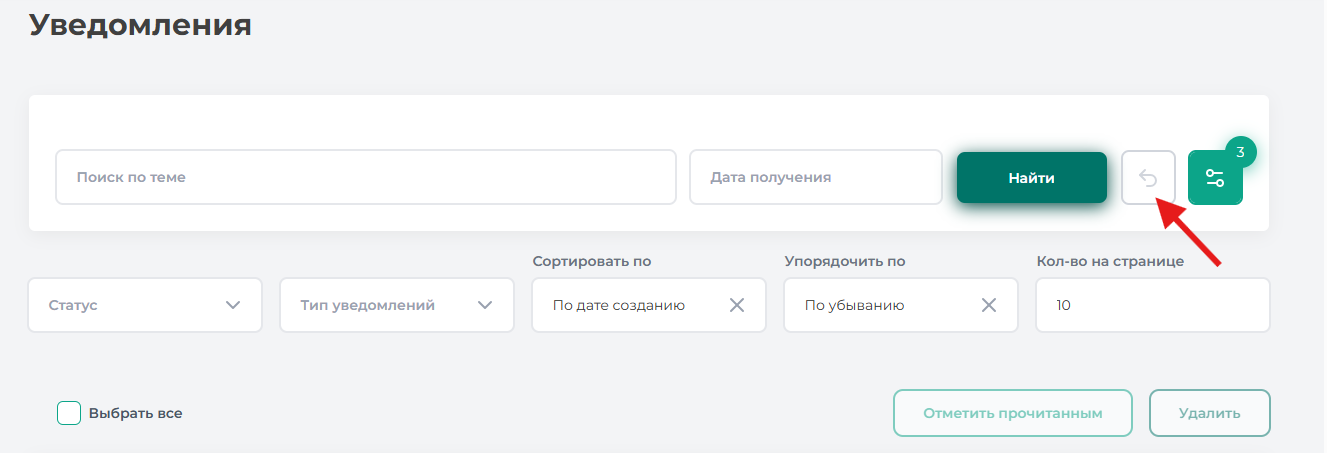● Количество на странице – по умолчанию – 10 уведомлений.