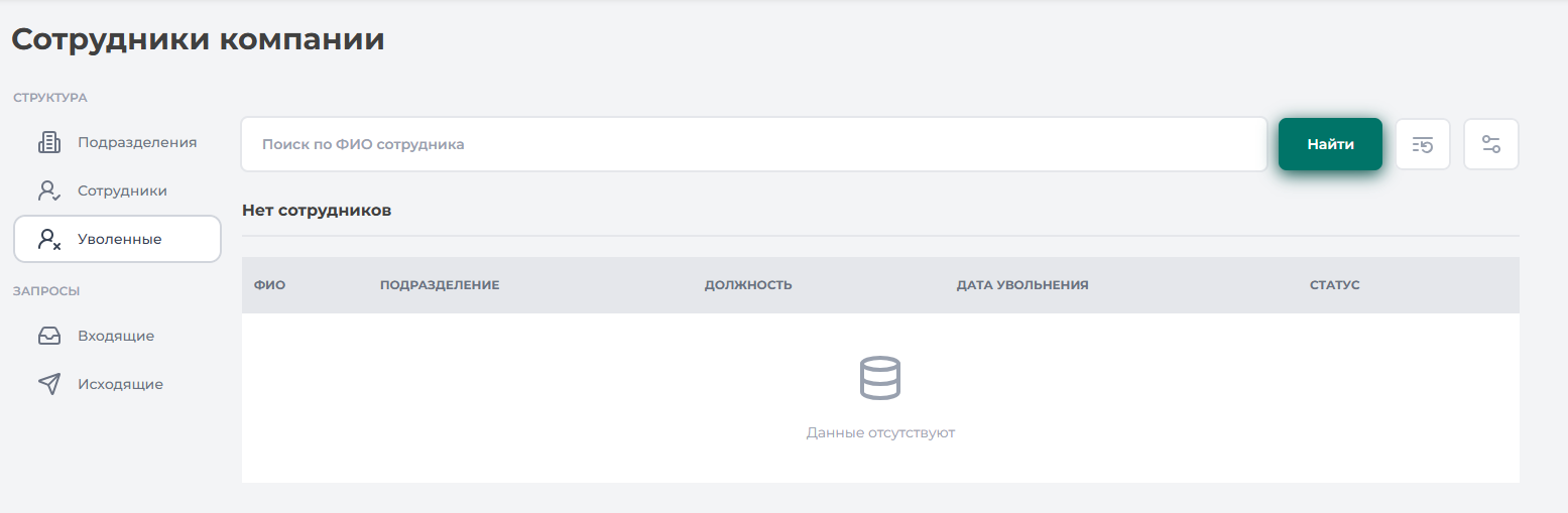 Раздел «Уволенные» отображает список сотрудников компании, которые были удалены (уволены) из системы (Рисунок 37).