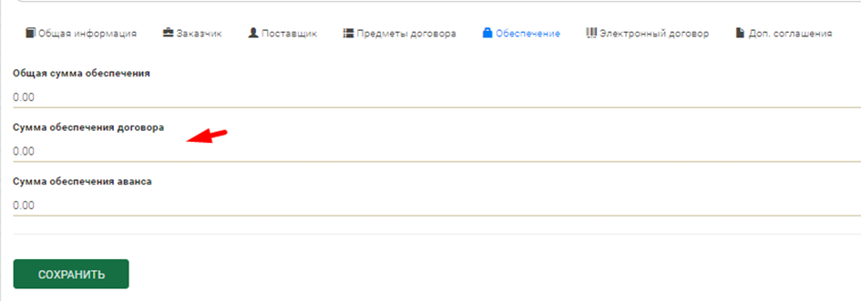 При выборе Автором договора строки «не требуется обеспечение исполнения договора», в поле «Обеспечение исполнения договора» карточки договора отображается «0»