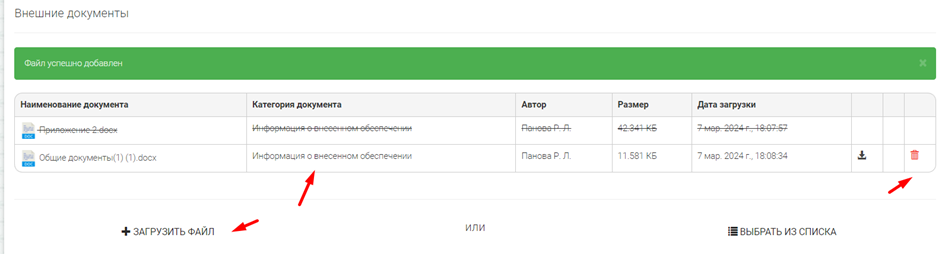Поставщик в карточке договора имеет возможность прикрепить, а также удалить документ о внесенном обеспечении исполнения договора. Для прикрепления документа Поставщику необходимо нажать кнопку «Загрузить файл»