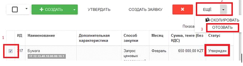 Отзыв заявки на закупку